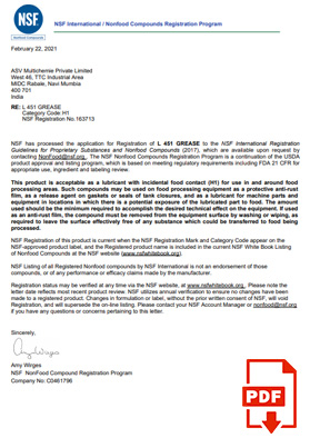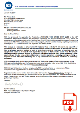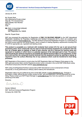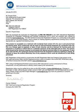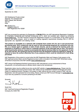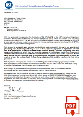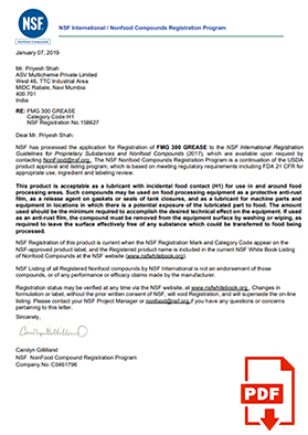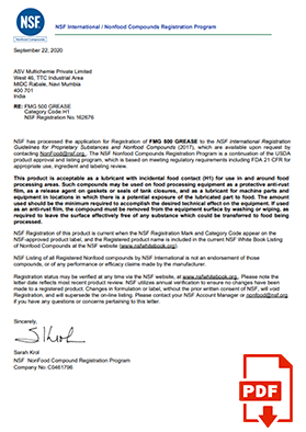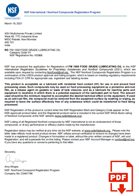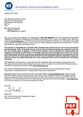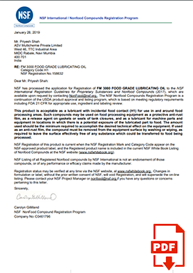 FM 1000 Food Grade Lubricating Oil NSF # 163966